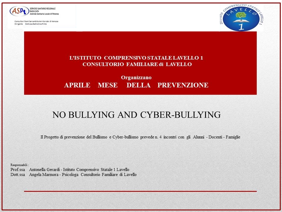 Aprile mese della prevenzione "NO Bullyng and Ciber-Bulling"